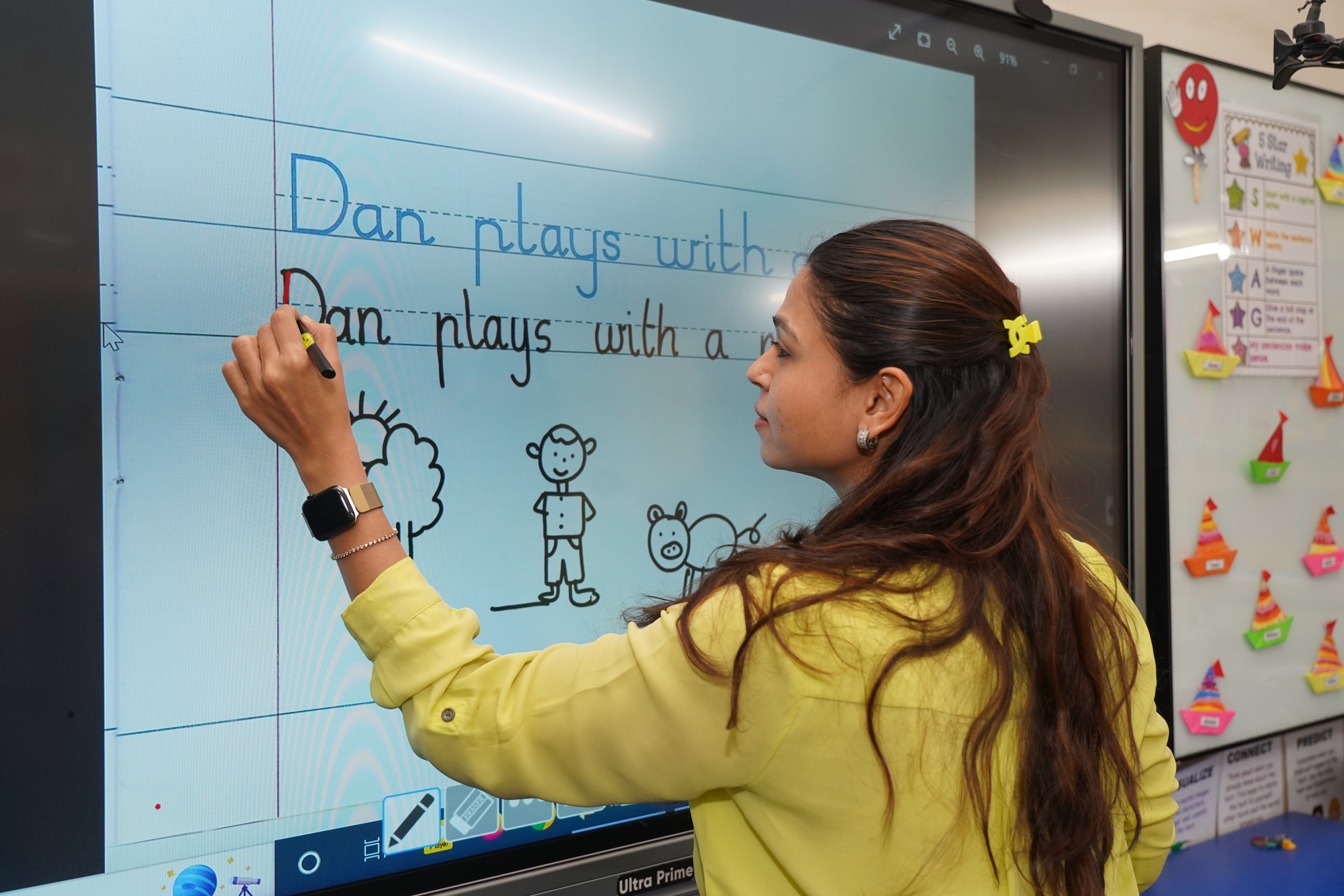 The Smart Classrooms are equipped with advanced smartboards and cutting-edge interactive technology designed to enhance learning experiences. These digital tools allow teachers to create dynamic, multimedia lessons that engage students in a more interactive and immersive way while maintain a healthy balance with non-screen teaching and learning interactions.